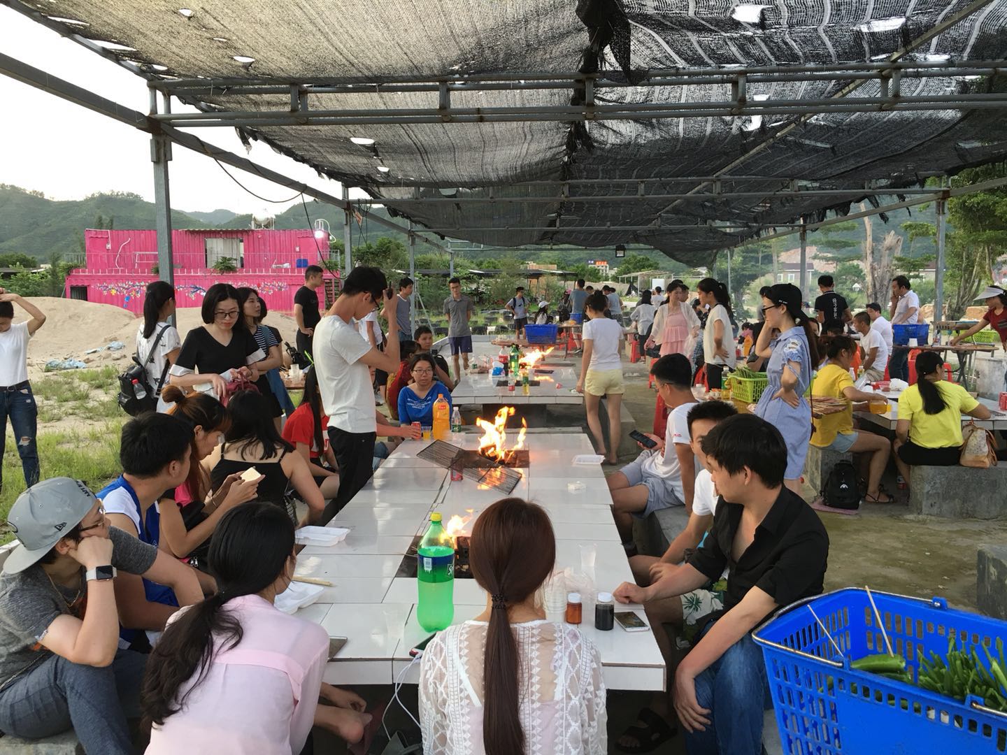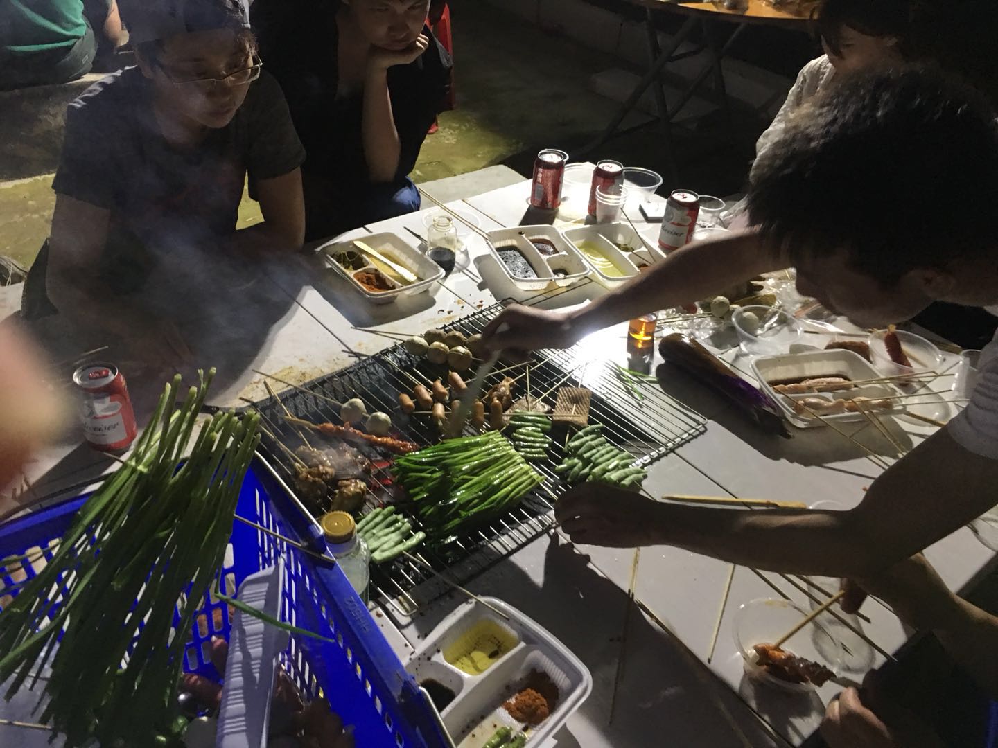 漂流過后,準備晚餐燒烤,同樣,按照分組準備食材,開始燒烤。