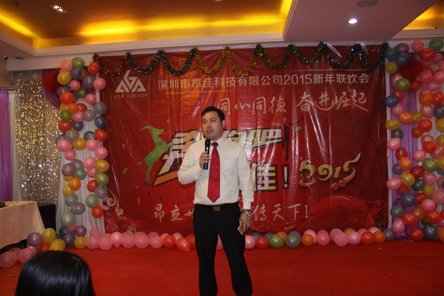 冉檸愷先生為年會作開場祝辭,他說道,人們常稱 2014是愛你一世,在這個有愛的日子里,他謹(jǐn)代表深圳昂佳科技有限公司向全體員工及家屬,向合作伙伴與供應(yīng)商,向媒體與各界好友表示熱烈的歡迎與誠摯的感謝。2015年昂佳將在2014年基礎(chǔ)上進一步發(fā)展,聚眾之力,進一步研發(fā)新產(chǎn)品,滲透行業(yè),讓員工、合作伙伴、客戶、各界友人收獲到更多價值。祝詞結(jié)尾,冉檸愷先生堅定表示,“2015年,我們會走得更好!奔跑吧,昂佳?。?!”