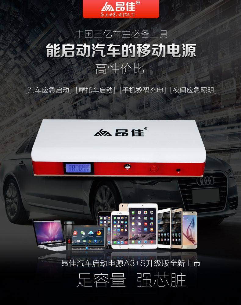 - 主要的功能:汽車應(yīng)急啟動、LED燈(照明、爆閃、SOS)另可對車載電器、手機、平板電腦、MP4、數(shù)碼相機、PDA、掌上游戲機、學(xué)習(xí)機等產(chǎn)品充電
