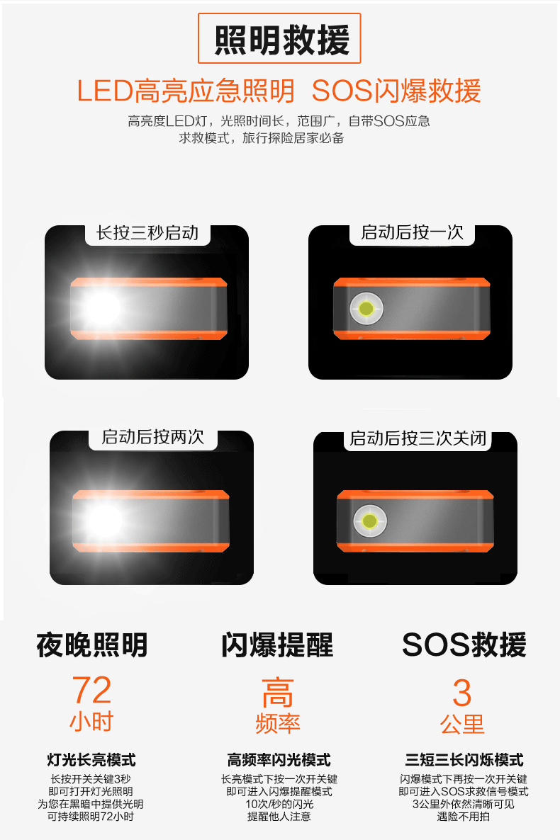 - 主要的功能:汽車應急啟動、LED燈(照明、爆閃、SOS)另可對車載電器、手機、平板電腦、MP4、數(shù)碼相機、PDA、掌上游戲機、學習機等產(chǎn)品充電